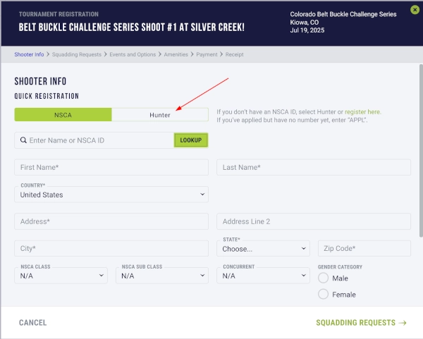 3. Click on "Hunter". This will put you in the non NSCA members group